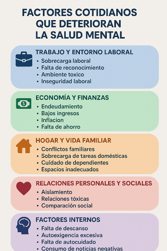 Cuidar la salud mental implica atender varios aspectos: el bienestar emocional, la autoestima, las relaciones interpersonales, la capacidad para afrontar el estrés y la satisfacción con la vida. Cuando uno de estos pilares se ve afectado, el equilibrio psicológico puede tambalear.